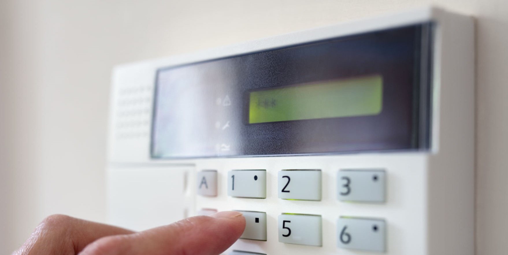 Security alarm keypad with person arming the system concept for crime prevention