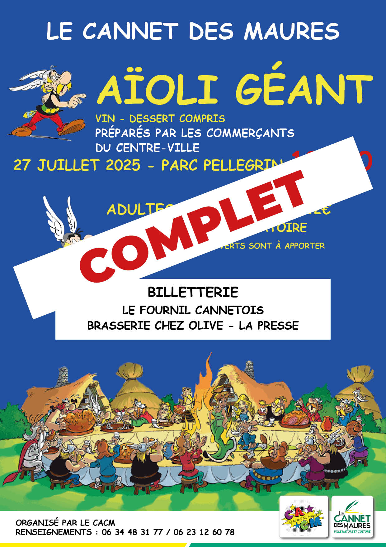 Dimanche 27 juillet 2025 à 19h dans le parc Pellegrin, aïoli géant (vin et dessert compris) préparé par les commerçants du centre-ville.