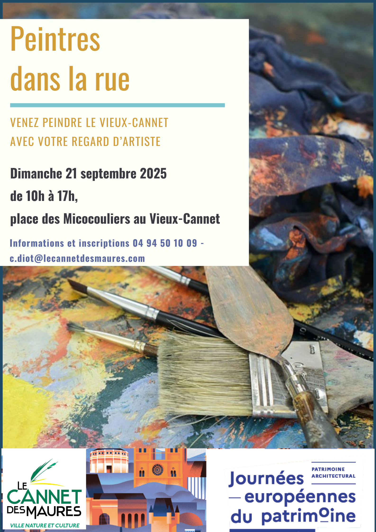 Le dimanche 21 septembre 2025 de 10h à 17h sur la place des Micocouliers au Vieux-Cannet, venez peindre le Vieux-Cannet avec votre regard d’artiste.