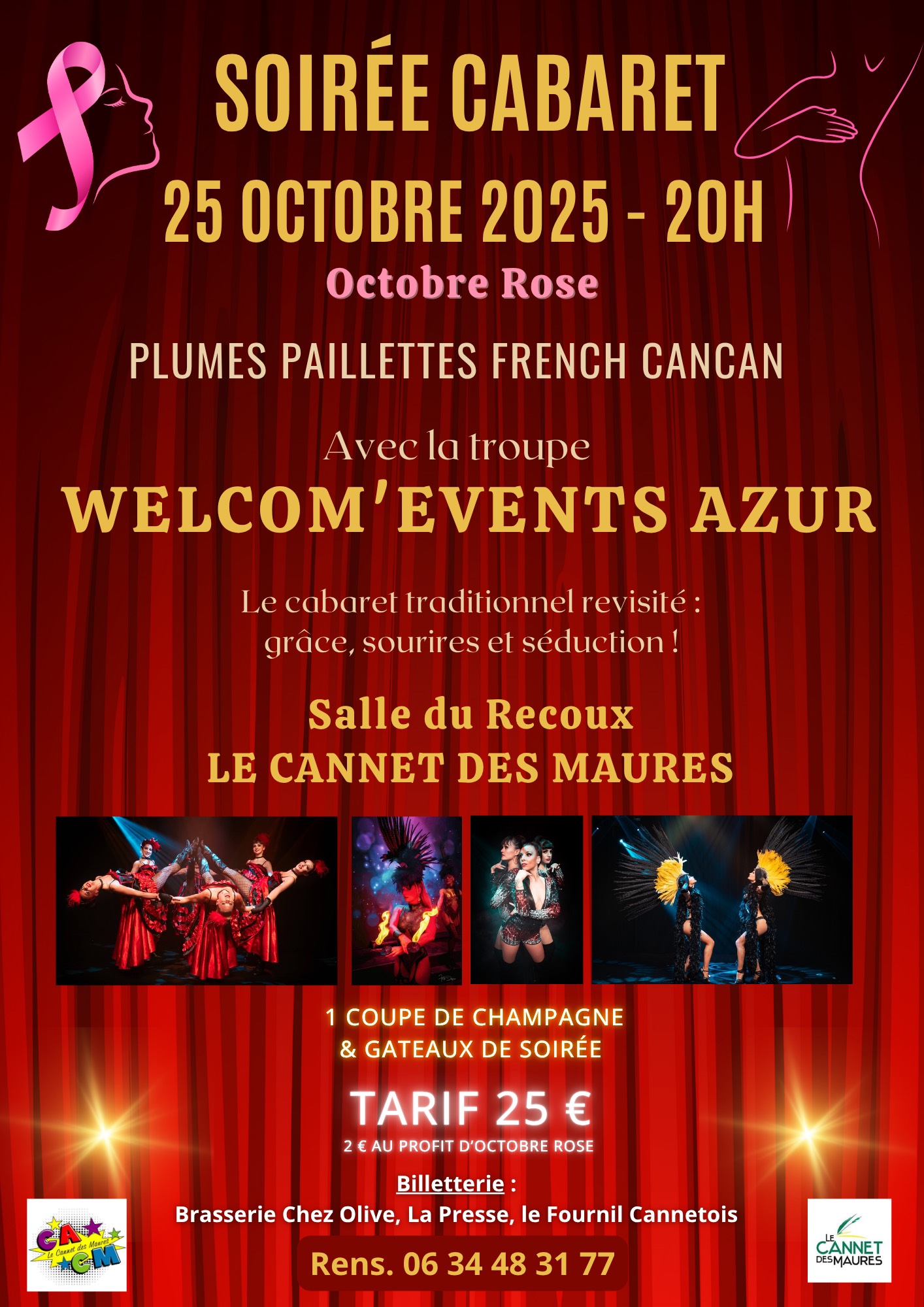 Samedi 25 octobre 2025 à 20h dans la salle du Recoux, soirée cabaret plumes, paillettes,, french cancan.